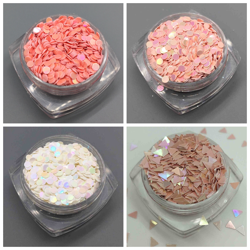 Round 1mm, 2mm and 3mm available. 1/10" and 1/24" available. 3D glitter/sequins available.