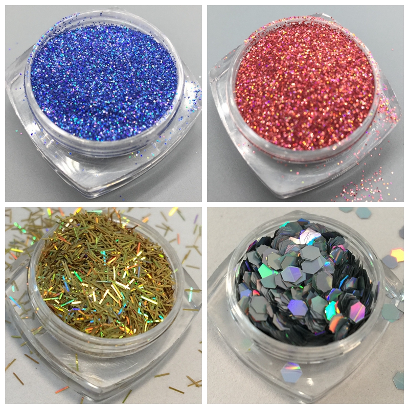 丰彩镭射金葱粉具有金属光泽并呈现彩虹的颜色,无毒,环保,耐一般溶剂,不耐酸碱。